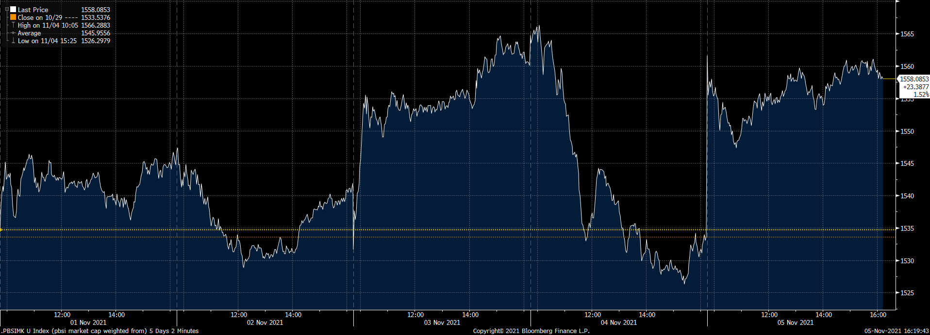 Oct 4 - Oct 8, 2021; Click On Image to see recap. Note: PBSI has been updated to market cap weighted index